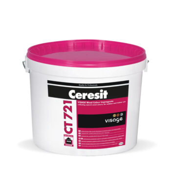 CERESIT CT721 е средство за импрегнација (боење) на декоративниот малтер 720 VISAGE. Достапно е во 12 различни нијанси на природно дрво. Се одликува со висока отпорност на временски услови, исклучителна издржливост и отпорност на нечистотија, висока стабилност на бојата како и одлична хидрофобност.